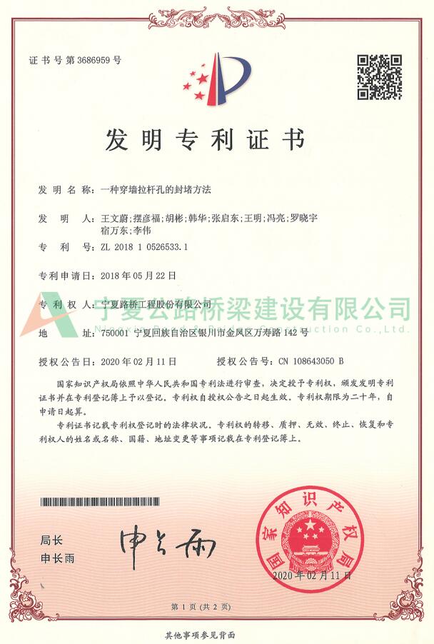 发明专利:一种穿墙拉杆孔的封堵要领